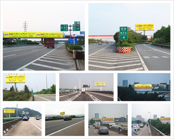 如:佛開高速龍山立交跨線橋、廣惠高速小金口、廣珠西順德服務區、廣深高速厚街立交入口、廣深沿江高速長安互通、廣深沿江高速立沙島互通(北行)、廣深高速道滘立交入口、廣韶高速、廣佛高速南莊立交跨線橋、廣珠東線高速浪網跨線橋、廣珠東線高速逸仙大道跨線橋、濟廣高速 (廣州段)沙埔服務區內、濟廣高速 (廣州段)石灘互通立交內、深汕高速西段鲘門服務區北區內、汕汾高速公路外砂收費站出入口立交內、深圳寶安中心區新安六路與興業路交匯、S121龍江二橋A1廣告 (樂從往龍江,往勒流、沙頭、九江、西樵山、鶴山方向) 等重點投放了戶外廣告。